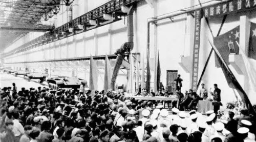 1959年8月22日,凝結(jié)著干部職工心血和汗水的32輛59式坦克,比建廠時計劃進(jìn)度提前一年交付部隊,經(jīng)過嚴(yán)格考核試驗后參加了建國十周年國慶大閱兵。