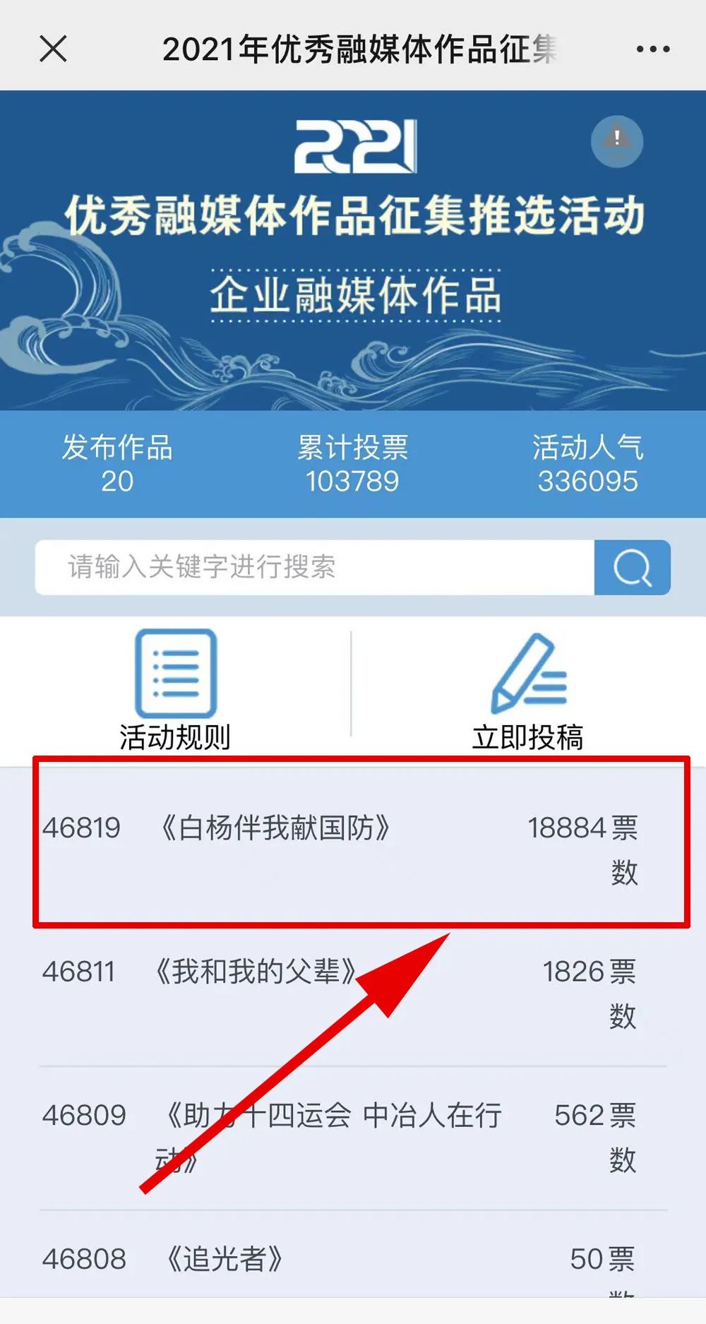 近日,由“文化強(qiáng)國”光明日報(bào)協(xié)同推廣平臺、光明網(wǎng)、北京師范大學(xué)新媒體傳播研究中心和光明天翼5G融媒實(shí)驗(yàn)室共同主辦的“2021年優(yōu)秀融媒體作品征集推選活動”開啟線上投票環(huán)節(jié),經(jīng)過專家委員會評審,中國兵器工業(yè)集團(tuán)北重集團(tuán)《白楊伴我獻(xiàn)國防》音樂MV入選活動前二十名,并進(jìn)入網(wǎng)絡(luò)投票環(huán)節(jié)。 《白楊伴我獻(xiàn)國防》 楊樹參天 高聳云端的是兵工人 “履行好強(qiáng)軍首責(zé)”的壯志凌云! 深植北疆 傾獻(xiàn)沃土的是北重人 “推動高質(zhì)量發(fā)展”的壯志豪情! 白楊樹伴著我們茁壯成長 見證著我們獻(xiàn)身國防! 投票方式 1.掃描下方二維碼,進(jìn)入初始界面,點(diǎn)擊“企業(yè)融媒體作品征集”,進(jìn)入投票界面點(diǎn)擊《白楊伴我獻(xiàn)國防》,點(diǎn)擊“投TA一票”; 2. 每人每日可投10票,直至提示投票達(dá)到上限即可; 3.投票時間:2022年3月17日09:00-2022年4月2日17:00。 來源/光明網(wǎng)、北重集團(tuán) |