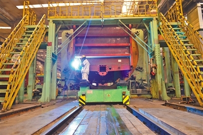 中國兵器工業(yè)集團(tuán)一機(jī)集團(tuán)北方創(chuàng)業(yè)公司生產(chǎn)線開足馬力生產(chǎn)鐵路車輛產(chǎn)品。日前,為圓滿完成1200臺C70E(H)型通用敞車生產(chǎn)任務(wù),該公司不斷創(chuàng)新生產(chǎn)組織模式,新、舊兩條生產(chǎn)線全面啟動,白、夜班雙班組織生產(chǎn),有效保障生產(chǎn)進(jìn)度。(王磊 攝)