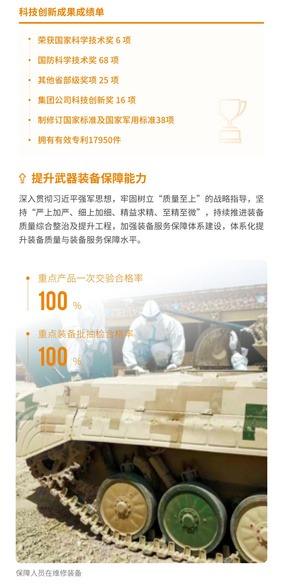 近日,兵器工業(yè)集團(tuán)正式發(fā)布第十三份年度社會(huì)責(zé)任報(bào)告——《中國(guó)兵器工業(yè)集團(tuán)有限公司2021年社會(huì)責(zé)任報(bào)告》,以“用心守護(hù)和平、用力爭(zhēng)創(chuàng)一流、用情溫暖社會(huì)”為主題,從恪守強(qiáng)軍首責(zé)、服務(wù)經(jīng)濟(jì)建設(shè)、共創(chuàng)美好生活三個(gè)維度,向社會(huì)全面披露2021年度履責(zé)實(shí)踐和履責(zé)業(yè)績(jī)?!秷?bào)告》連續(xù)第三年獲得中國(guó)企業(yè)社會(huì)責(zé)任報(bào)告評(píng)級(jí)專(zhuān)家委員會(huì)“五星佳”評(píng)級(jí),兵器工業(yè)集團(tuán)成為軍工行業(yè)唯一連續(xù)11年獲得五星及五星佳最高評(píng)級(jí)的企業(yè)。 一圖解碼兵器工業(yè)的“責(zé)任力量” |
